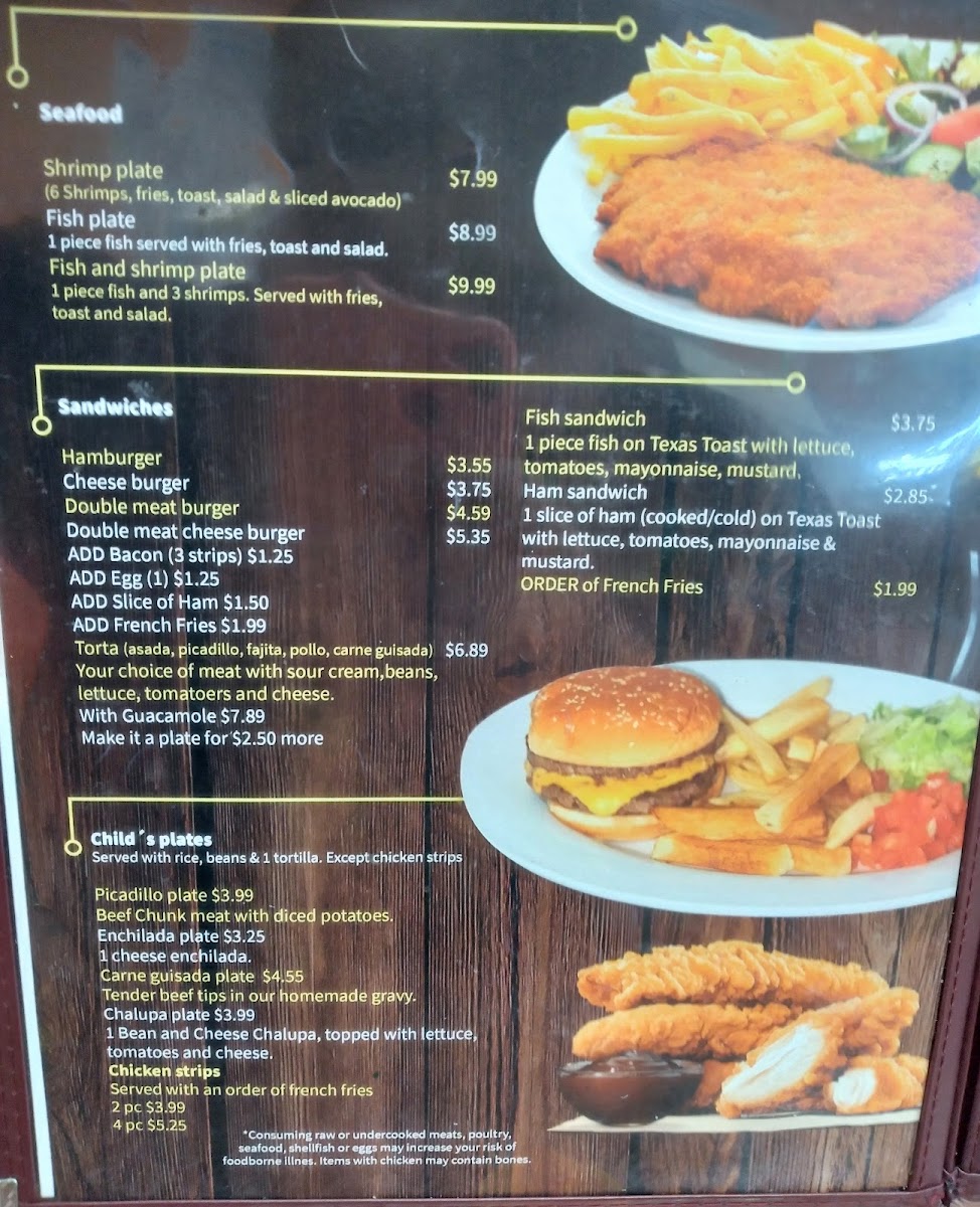 This menu is structured to accommodate quick orders as well as casual family dining, appealing to those seeking traditional Mexican comfort foods throughout the day.