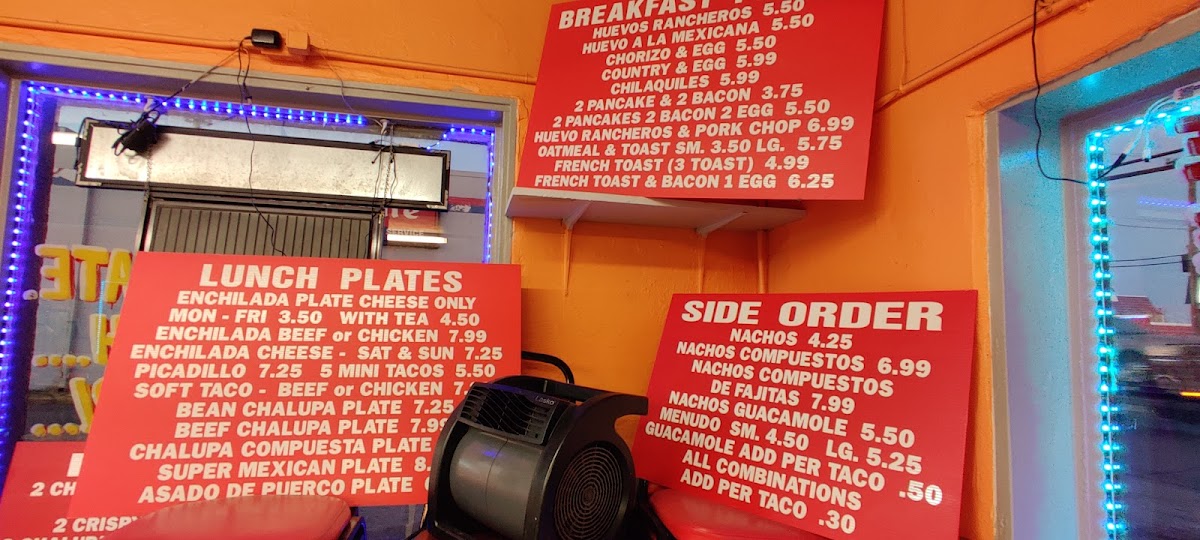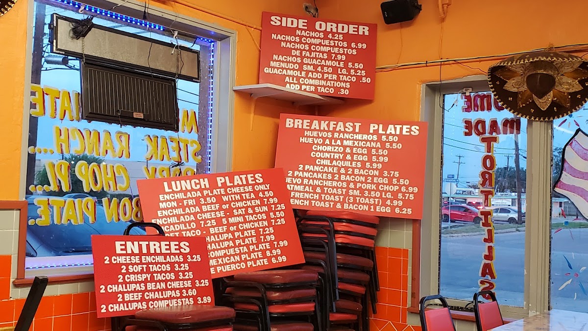 The menu offers a variety of traditional Mexican dishes suitable for breakfast, lunch, and casual dining throughout the day. Visitors can find a selection of tacos, enchiladas, burritos, and breakfast tacos, along with classic family-style options commonly served in a taco house setting.