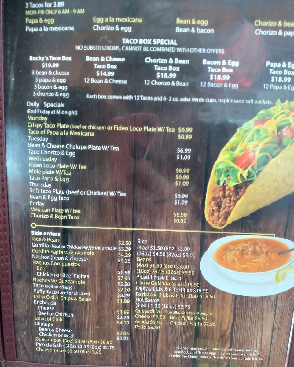 The Original Rocky's Taco House Menu